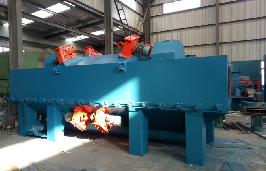 為山西客戶定制開發(fā)的鋼結(jié)構(gòu)通過式拋丸機(jī)現(xiàn)已運拋丸機(jī)運送到山西客戶的廠里,正在安排技術(shù)人員安裝設(shè)備,下圖為設(shè)備主體部分,該設(shè)備包含:前后各12米輸送輥道、提升機(jī)、分離器、除塵器等部件,根據(jù)客戶常規(guī)的拋丸工件結(jié)合拋丸機(jī)制作的多年生產(chǎn)經(jīng)驗定制生產(chǎn),采用8臺拋丸器,處理大型鋼結(jié)構(gòu)件時拋丸器全部打開,滿負(fù)荷運轉(zhuǎn),清理小規(guī)格的工件,可關(guān)閉上部兩臺拋丸器,節(jié)約功耗。滿足不同的清理需求。